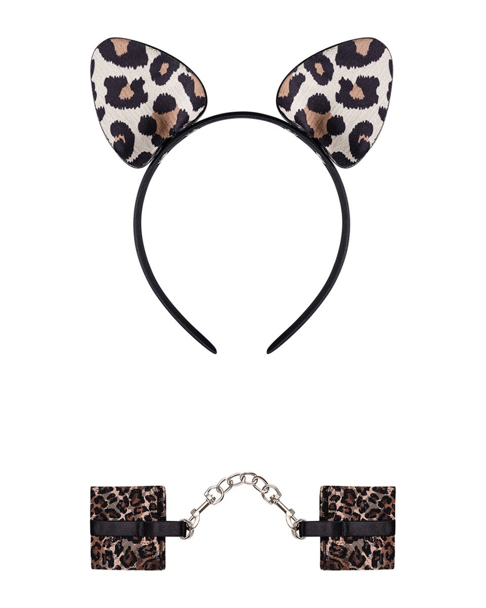 Комплект для ролевых игр Tigerlla - дикая кошка. Ободок с ушками и наручники, соединенные съемной цепочкой. В комплекте: наручники, ободок.