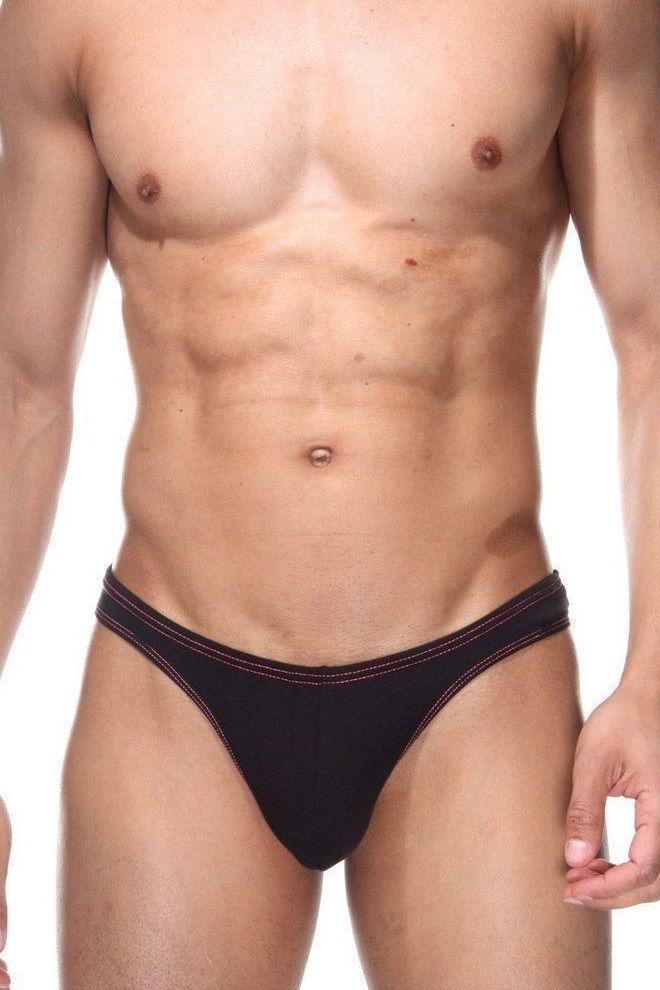 Черные мужские трусы-тонги с контрастной строчкой.
