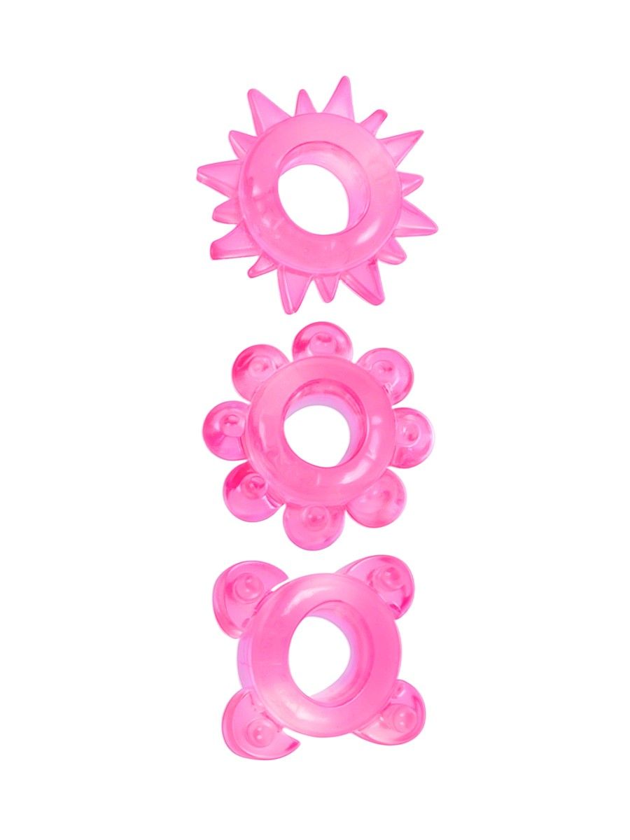 Эрекционное кольцо обеспечит продолжительную эрекцию и поможет продлить интимную близость. «Отростки» на внешней поверхности секс-игрушки будут стимулировать интимные зоны партнёрши. Эрекционное кольцо хорошо тянется. Изготовлено из приятного на ощупь материала. Просто в использовании и уходе. В наборе 3 эрекционных кольца с различным рельефом.