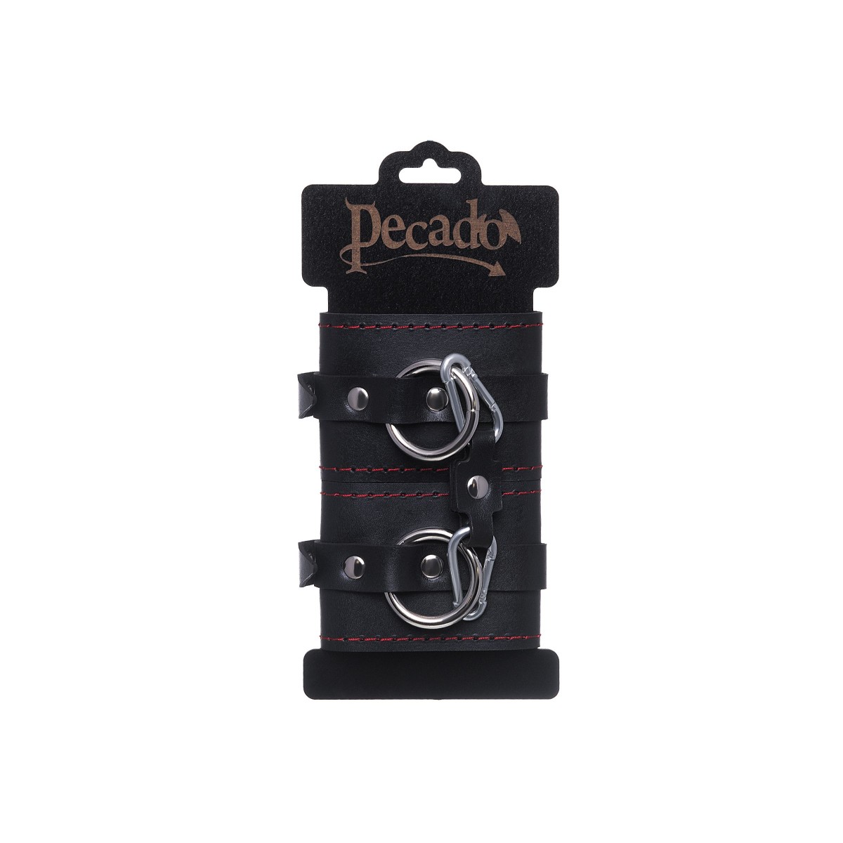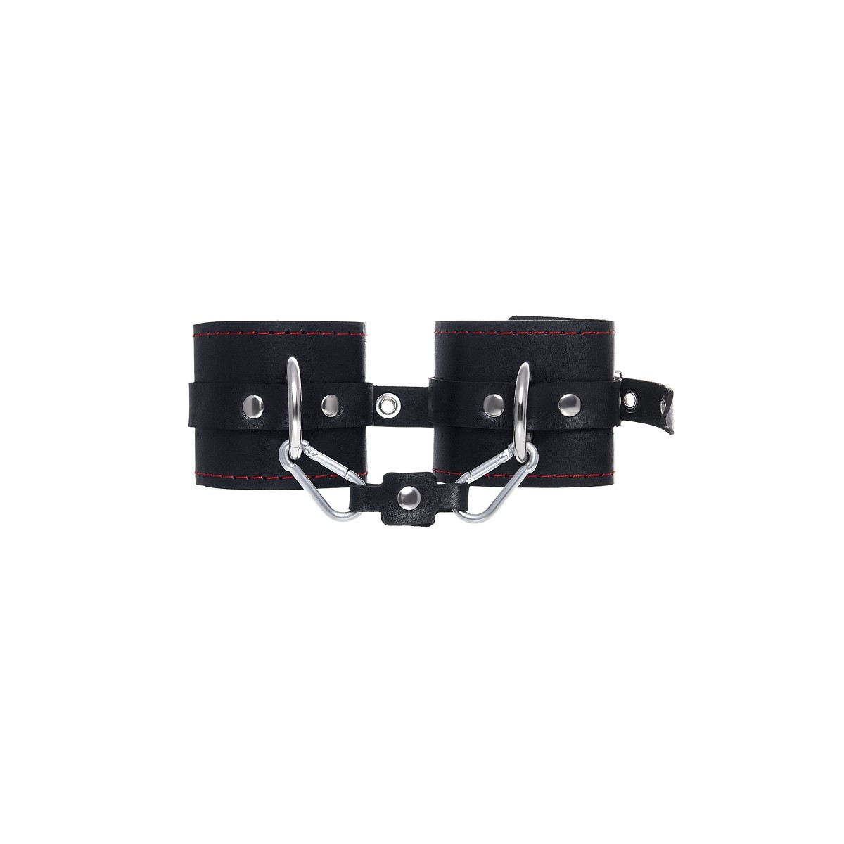 Однослойные кожаные наручники с контрастной строчкой красного цвета могут стать стильным аксессуаром на «свободных» руках, но могут послужить вашим целям и фантазиям по своему прямому назначению. Наличие двух карабинов и колец позволяет использовать изделие как раздельно – аксессуар-манжеты, так и как наручники для фиксации. К широким металлическим кольцам также можно присоединить и другие аксессуары при помощи карабинов. Благодаря универсальному размеру наручники могут использоваться и мужчинами, и женщинами. Размер легко регулируется с помощью металлических пряжек, органично вписывающихся в общий стиль. Длина манжет - 20 см, ширина - 6,5 см. Длина сцепки - 11 см.
