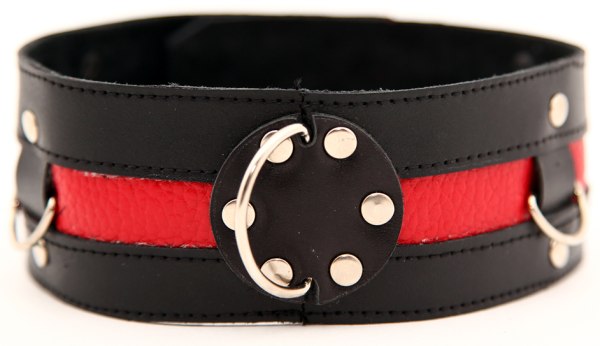 Чёрный ошейник с красной полосой.