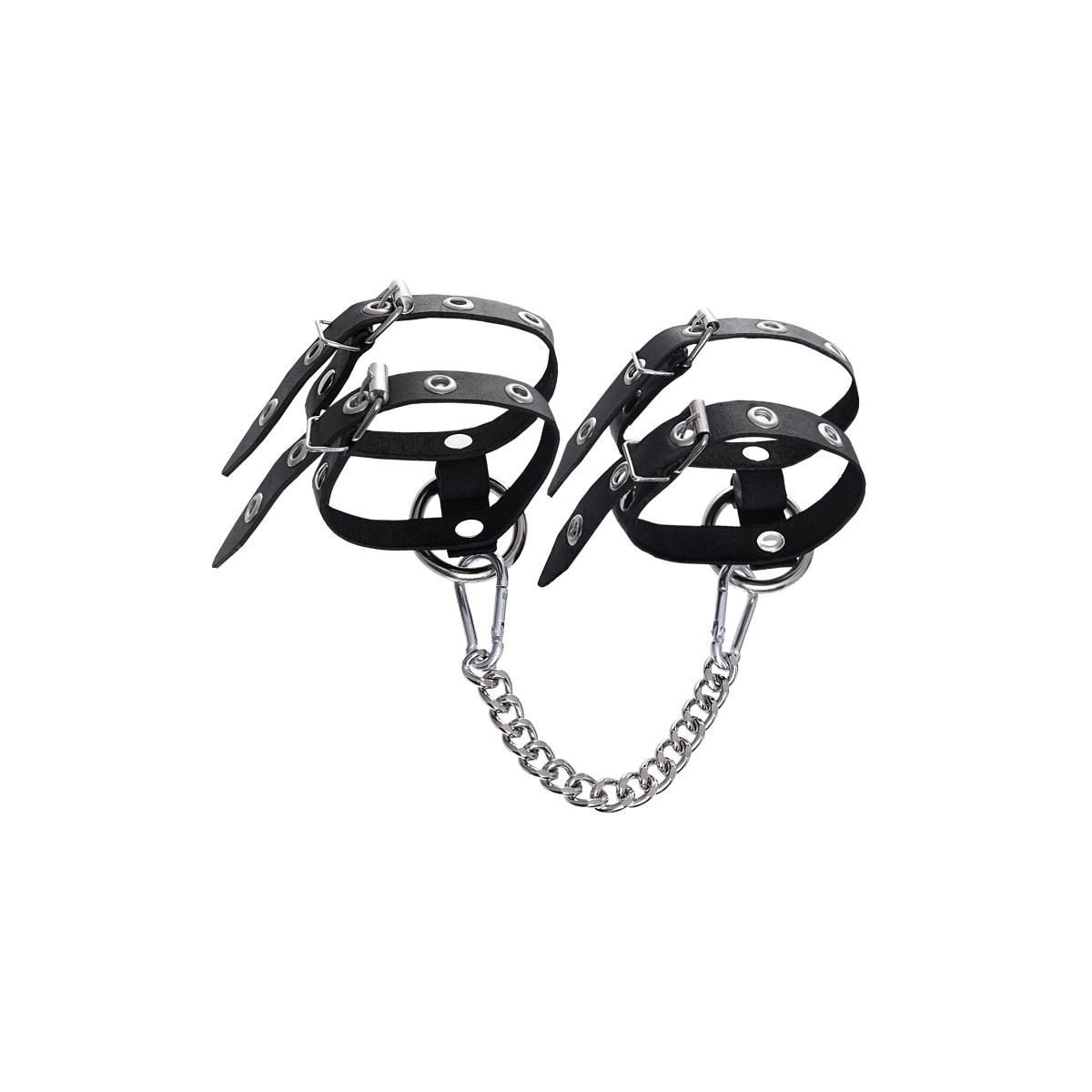 Эти однослойные кожаные оковы из двух ремешков могут стать стильным аксессуаром, а могут послужить вашим целям по своему прямому назначению. Частичное обездвиживание и невозможность двигать руками или ногами дают вам полную власть над партнером – взрослые игры для взрослых. Наличие двух колец и карабинов, соединенных между собой металлической цепочкой, позволяет использовать изделие как раздельно – аксессуар-манжеты, так и как оковы для фиксации. К широким металлическим кольцам также можно присоединить и другие аксессуары при помощи карабинов. Благодаря универсальному размеру оковы могут использоваться и мужчинами, и женщинами. Размер легко регулируется с помощью металлических пряжек, органично вписывающихся в общий стиль. Длина манжет - 30 см, ширина ремешков - 1,6 см. Длина сцепки - 19 см.