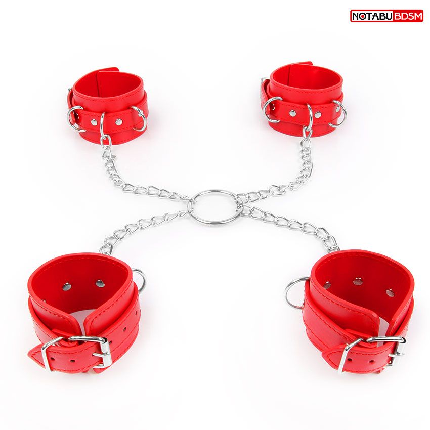 БДСМ-аксессуар придаст остроты сексу, подарит яркие, незабываемые эмоции! В комплект входят наручники и оковы, размер которых регулируется с помощью ремней. При необходимости все изделия скрепляются друг с другом с помощью металлических цепочек. Интимный аксессуар поможет усилить доминирование одного участника любовной игры и подчеркнёт подчинённое положение другого.