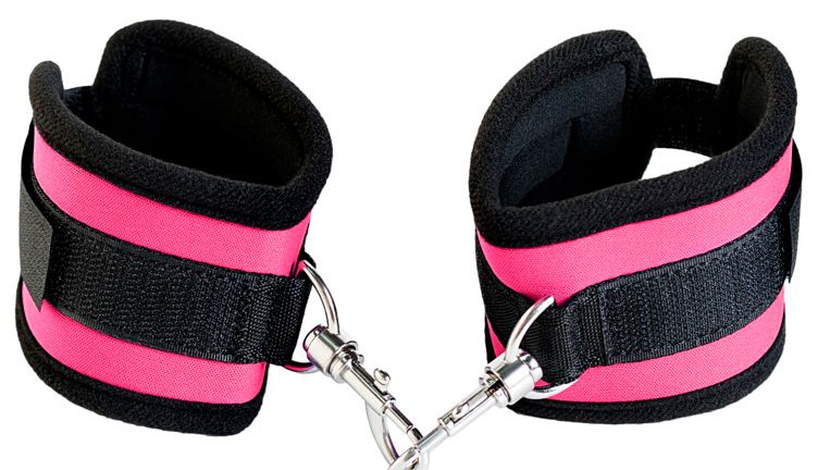 Оковы на ноги из неопрена розовые. Мягкие оковы с застежкой велкро, позволяющей максимально регулировать объем. Между собой манжеты соединены карабинами.