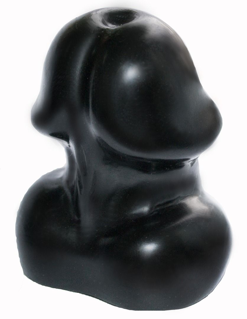 Сувенир в виде головки члена из ПВХ черного цвета. Упакован в яркую подарочную коробку и бархатный мешочек.