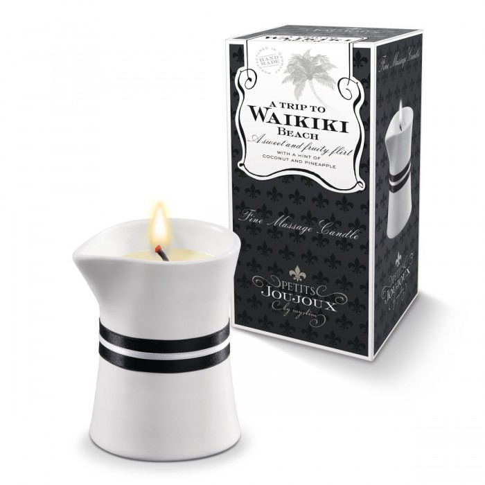 Когда спальню освещает лишь маленькая свеча, по комнате распространяется волшебный аромат с нотами кокоса и ананаса, а руки любимого скользят по телу, трудно сохранить спокойствие. Романтическая атмосфера вкупе с эротическим массажем…ох, это нечто незабываемое! Малая свеча Petits Joujoux, выполненная в форме кувшинчика, служит источником как света и аромата, так и массажного масла – воск превращается в него при горении. Входящие в его состав масло ши и жожоба увлажнят кожу и насытят её питательными веществами. Ресурс свечи – 30 часов.