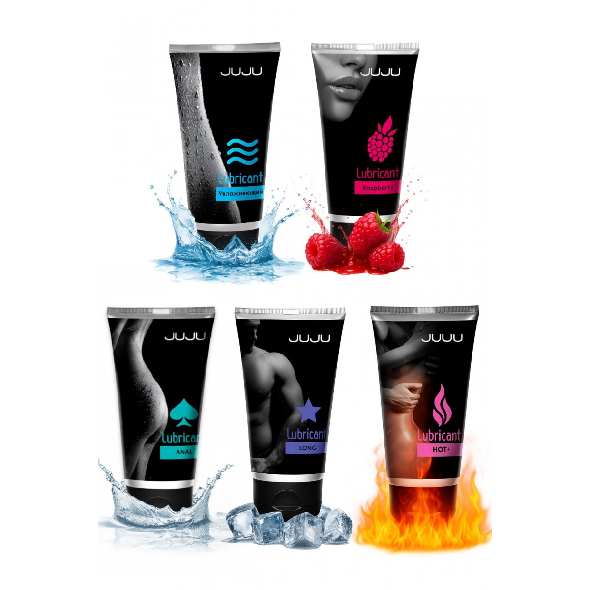 Набор из 5 лубрикантов включает увлажняющий лубрикант с нежной шелковистой текстурой для комфортного и естественного скольжения без липкости и следов на коже. JUJU Long обладает пролонгирующим эффектом благодаря охлаждающему ментиллактату, обеспечивая продолжительные и чувственные фрикции. Возбуждающий JUJU HOT+ с экстрактом женьшеня и метилникотинатом улучшает микроциркуляцию и создает согревающий эффект с повышением чувствительности. Силиконовый JUJU Anal предназначен для анального секса, обеспечивая максимально длительное скольжение. Лубрикант с ароматом малины добавляет сладость и игривость интимным моментам. Все лубриканты в наборе безопасны, подходят для оральных ласк, полностью совместимы с презервативами и секс-игрушками, легко смываются водой и не оставляют следов, что делает интимную жизнь разнообразной, комфортной и максимально приятной.