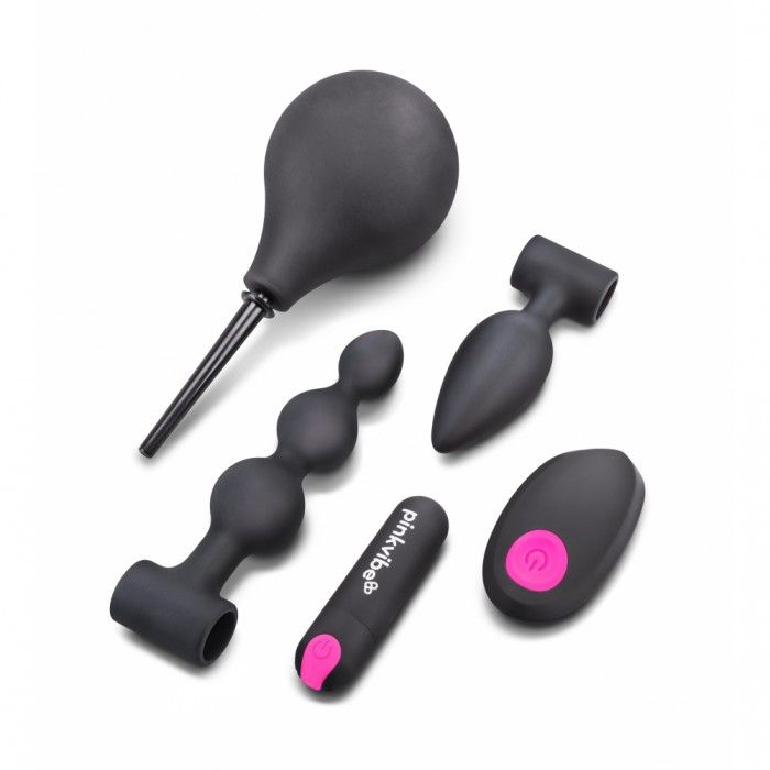 Набор для начинающих, подготавливающий к анальному сексу включает в себя: гигиенический анальный душ, виброэлемент на дистанционном управлении, небольшой силиконовый анальный плаг и анальную елочку из силикона. Начните с использования анального душа, чтобы получить ощущение чистоты и свежести. Это повысит ваш комфорт и уверенность перед анальными играми. Сожмите грушу и опустите кончик насадки в воду комнатной температуры. Перед использованием смажьте насадку анальной смазкой-гелем на водной основе и медленно вводите наконечник в задний проход. Нажмите на грушу так, чтобы вода попала в тело. Уберите душ из анального отверстия и подождите, пока вода стечет естественным образом наружу. Используйте душ за полчаса до анальных игр. Не используйте часто и не вливайте большое количество воды, так как это может привести к раздражению и нарушению естественного баланса организма. Универсальный виброэлемент имеет компактный размер. Вы можете вставить его внутрь плага или елочки, а также использовать его отдельно для стимуляции различных эрогенных зон на теле. Зарядите этот вибростимулятор через USB-кабель, прилагаемый в комплекте. Полная зарядка аккумулятора продлится 120 минут и обеспечит 60 минут беспрерывной работы. Чтобы активировать вибрацию, нажмите кнопку на пульте дистанционного управления или на виброэлементе, чтобы выбрать одну из 3 скоростей и 7 режимов работы. Длина виброэлемента - 7,5 см, диаметр - 2 см. Рабочая длина пробки - 8 см, диаметр - 3 см. Рабочая длина елочки - 12 см, диаметр - 2-3 см.