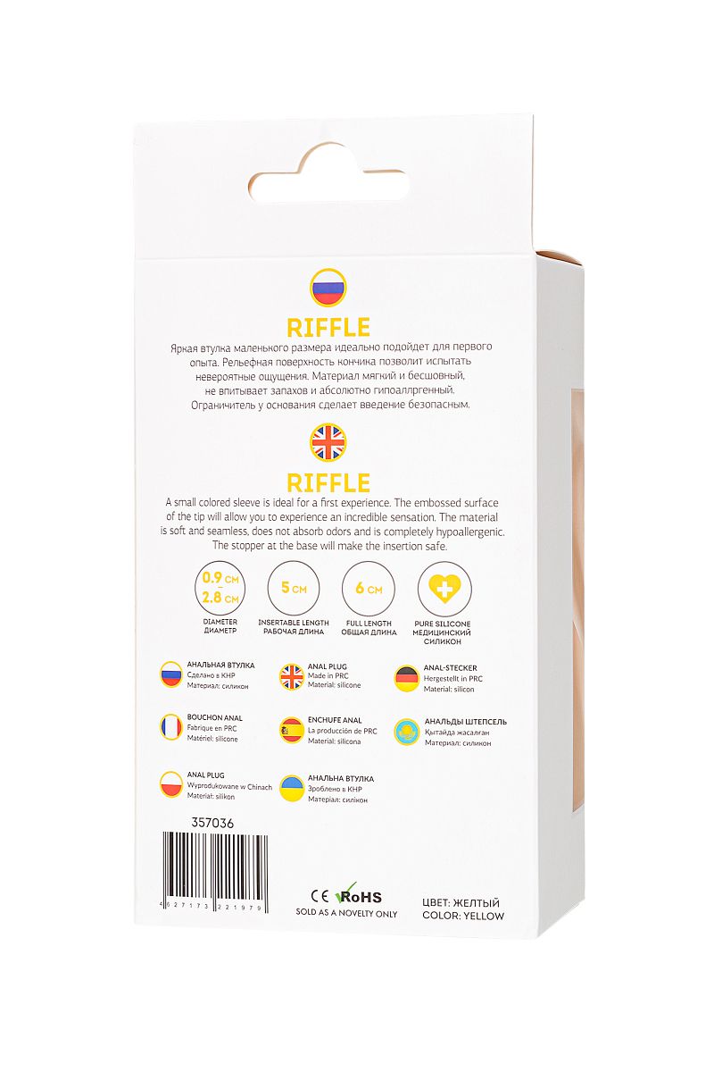 В секс-шопе Orgasmix вы можете купить Желтая анальная втулка Riffle - 6 см. артикул 222894 по цене руб. с доставкой в город Невинномысск. Мы осуществляем доставку по всей России. Ближайшая дата отправки этого товара . Заказы принимаются круглосуточно через интернет-магазин.