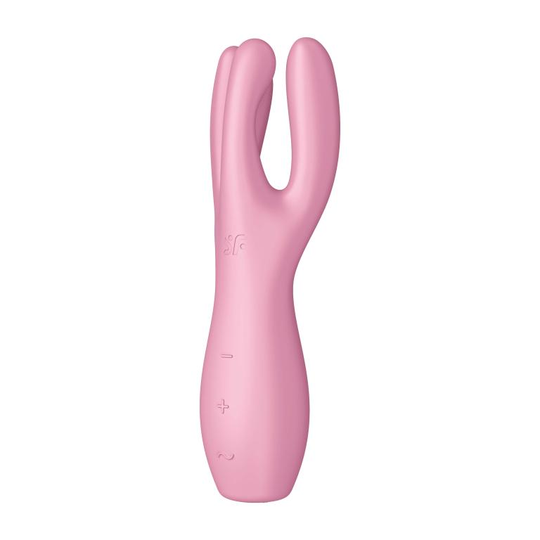 Вибромассажер Threesome 3 обеспечивает чувственную, обширную стимуляцию клитора и половых губ: он имеет эргономичную форму с 3 закругленными отростками, в каждом из которых находится мощный мотор. Два внешних отростка ласкают половые губы, в то время как средний располагается по центру на клиторе и может быть нажат для более интенсивной стимуляции. Вибрации внешнего и внутреннего отростков можно контролировать отдельно. Вибромассажер имеет 12 режимов вибрации. Благодаря практичной ручке вибратор удобно лежит в руке во время использования. Благодаря гладкой поверхности из мягкого силикона, Threesome 3 особенно гигиеничен и нежен для кожи. Threesome 3 также не боится погружений в воду: благодаря водонепроницаемому покрытию (IPX7) его также можно легко использовать в душе или ванне.