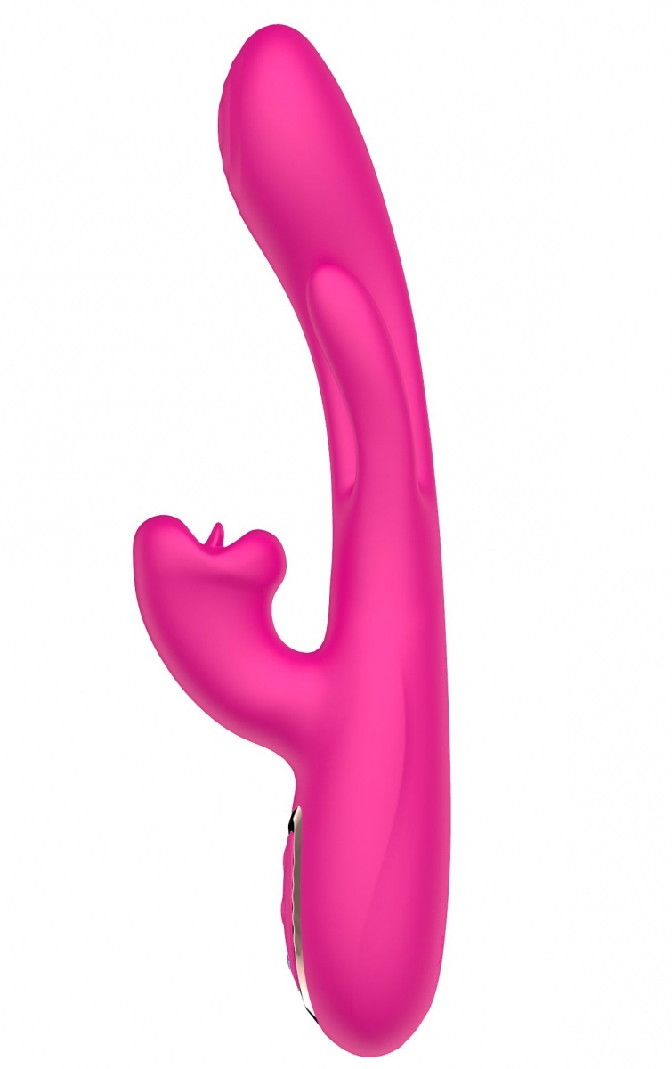 Розовый вибратор со стимуляцией клитора и фингерингом. 10 режимов вибрации.